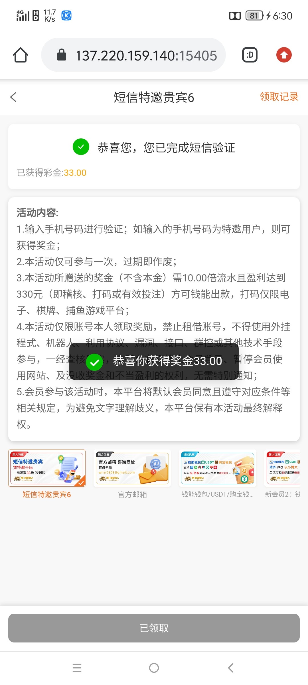 新人注册绑卡优惠自助手机号验证码申请33秒到账完成10倍流水满330提现,出款自测!