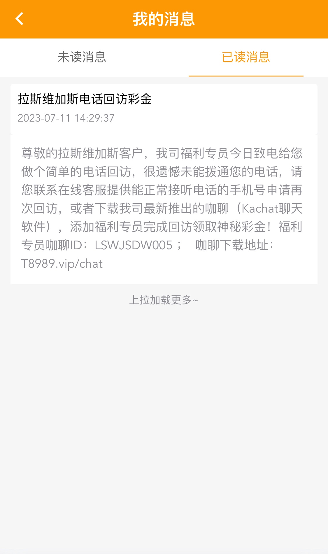 没接到电话的 可以在我的消息里看有没有这个消息  有充值记录的首次下载咖聊送36